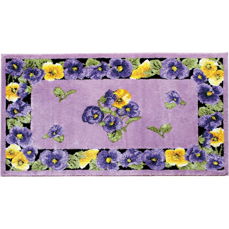 吸着玄関マット パンジー2 60×110cm パープル【送料無料】