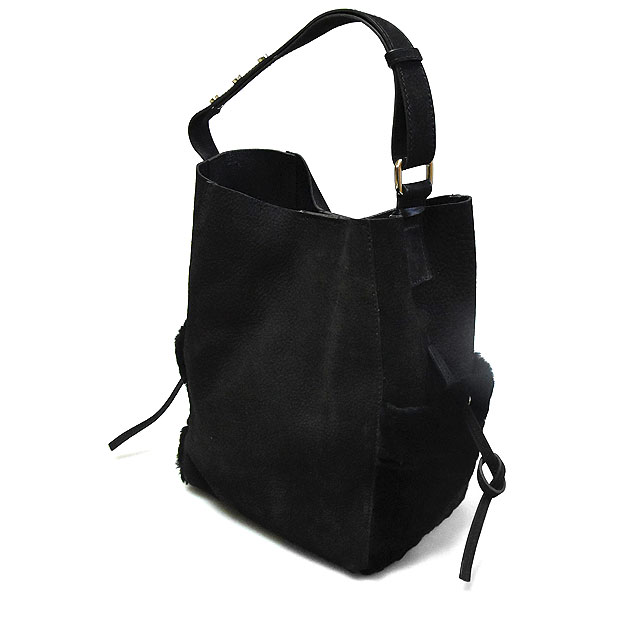 ≪Anita Bilardi≫ アニタ・ビラルディ本革レザー ブラック スエード ムートンファーポケット ワンハンドル バッグ トートバッグ Capricorn Leather Bag (Black)【レディース】