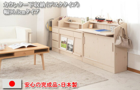 人や自然に優しい素材を使用している安心の日本製だから、丈夫で長持ち! カウンター下引戸収納付き デスク 幅90.5cm の詳細 商品名 カウンター下引戸収納付き デスク 幅90.5cm NO-0064 サイズ(約) 本体:幅90.5×奥行29.5(天板含む46)×高さ87.5cm 扉部内寸:幅(左右)42×奥行24(棚板奥行21)×高さ49.5cm 天板:幅85.5×奥行43.5cm 地面〜天板上:70.5cm 地面〜天板下:68cm 重量(約) 23kg 材質 本体:プリント紙化粧繊維板 取っ手:天然木(ウレタン樹脂塗装) 耐荷重 天板:10kg 上部小棚:3kg 棚板:5kg 可動棚 4枚(6cmピッチ・6段階) 付属品 2口コンセント(合計1500W)付き(コードの長さ:本体から170cm)、フック×1(左右どちらかに取り付けできます) 製造国 日本製 備考 完成品 広告文責 (有)アテーネシステム 076-254-0238[ラインナップ] カウンター下デスク 幅90.5cm カウンター下デスク 幅118.5cm
