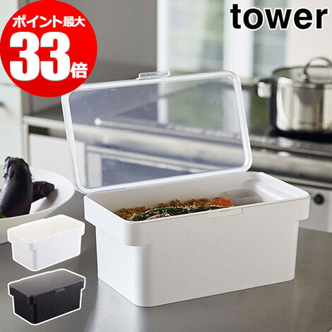 保存容器 tower 密閉ぬか漬けケース タワー 水取り器付 ホワイト ブラック 4944 4945 ぬか漬け ふた付き 3L 密閉 水抜き 容器 コンパクト シンプル 3リットル 漬物 ぬか床 山崎実業 ポイント10倍